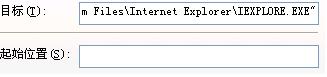 修改方法如下:将上面IE图标属性标签中的起始位置清除,将发现目标中后面的网址清除,清除以后的IE属性如下图: