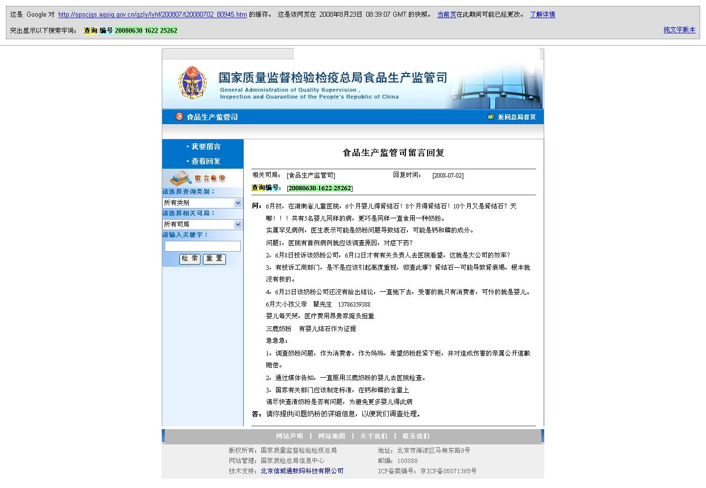 到此,问题基本就清楚了,但是作为“两千万妈妈的选择”的三鹿奶粉,喝这种“疑似含有化工原料的奶粉”的婴儿应该不止这100个吧?再联想到上面提到的一些出口大米中也含有这玩艺,那么我们平日吃的主食...另一个惊人的数据是我国现有200余万肾脏病患儿,其中慢性肾衰的病例数正在以每年13%的速度递增。但愿我又是在乌鸦嘴,但愿这些数据和这件事情没有任何关系。