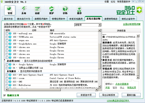 - 使用安全卫士360:虽然这个软件由于是免费软件,各项功能比较全面,使用起来还比较顺手,你在下载安装了该程序后,该程序会自动升级,你单击系统全面诊断标签,进入系统的进程的全面诊断,单击每个进程,在右侧显示该进程的详细描述等,如对winlog.exe的描述如下: