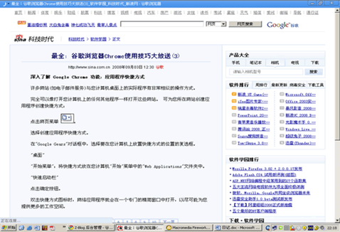 当你单击桌面或开始菜单这些位置上你创建的网站快捷方式时,这些网站将在一个更加简化的框架中打开,没有标签栏和地址栏,为你提供仅可能多的操作活动空间。