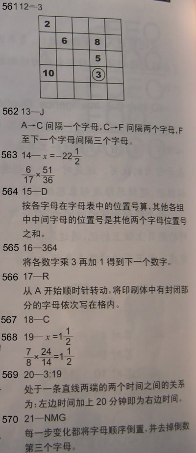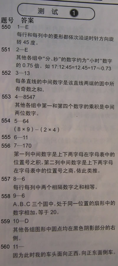 《大不列颠智能训练》测试1的答案: