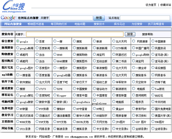 收录本站的网页的目录索引,可以单击http://web.archive.org/web/*/www.zhongguosou.com来访问: