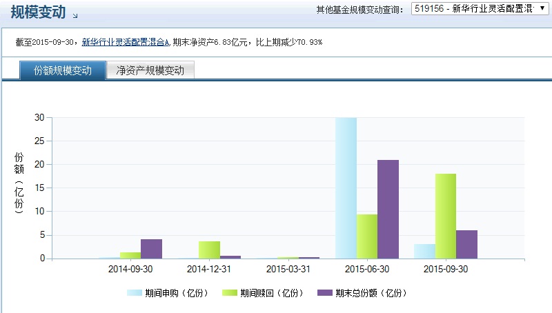 大家再翻翻新华行业灵活配置基金的规模变动:
