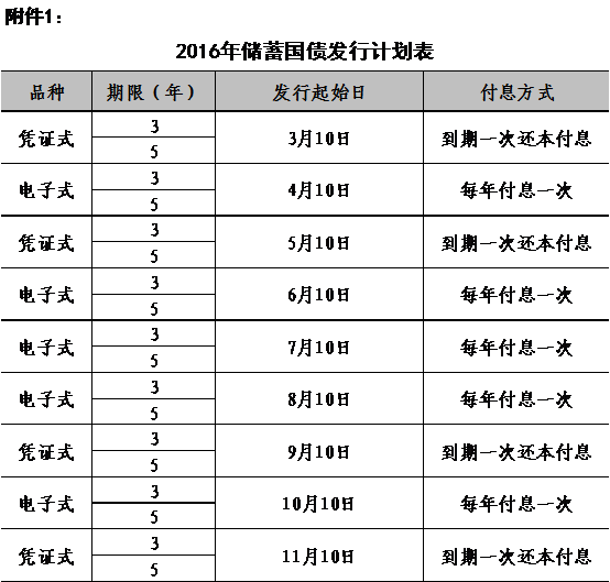 至于2016年国债的发行利率,可以看看2015年年底的发行利息。根据利率走势,2016年的利率明显低于2015年的利率。下面是2015年最后一期的利率:2015年最后一期国债即将发售,错过就要等明年,你考虑来一份么? 根据中华人民共和国财政部公告2015年第81号通知,2015年11月的国债发行时间为11月10日至11月19日,将发售本年度最后一期国债计划,形式为储蓄国债(电子式),利息年付,到期后连本带利一起返还。
