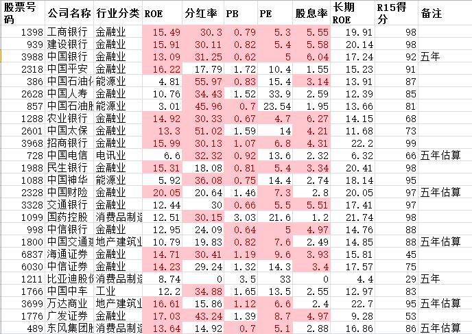 从表中可以看会,此指数几乎汇聚了一批中国最赚钱的较大公司,平均ROE达到13%,远远超过社会平均资产收益率,平均派息达到30%,表明赚到的钱是真金白银,不是玩虚的。历史长期ROE达到16.29%,目前低于此值,说明目前是处于相对低谷,部分还在下降通道,部分已经趴到了地上。加权R15得分达到85分,说明他们超过了85%的公司,他们代表着中国,并且是中国所有公司中金字塔最好的前15%公司,平均资产增长注定会超过GDP增长(一个中国社会平均增长的代表值)。这就是国企指数。