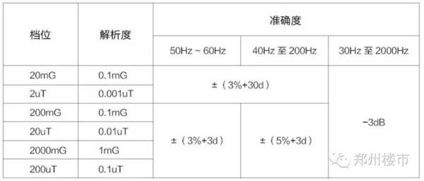 首先要展示给大家的是测试仪器,我们使用的是一款台湾泰仕品牌型号为TES-1393的电磁场检测仪,这款仪器为千元级别,检测数据有μT和mG两种单位,本文所有数据以μT(微特斯拉)为单位,精度解析度如下: