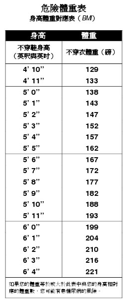 注:如果在表中无对应的身高,或需要查找准确的对应危险体重,请使用右边的计算器进行计算。